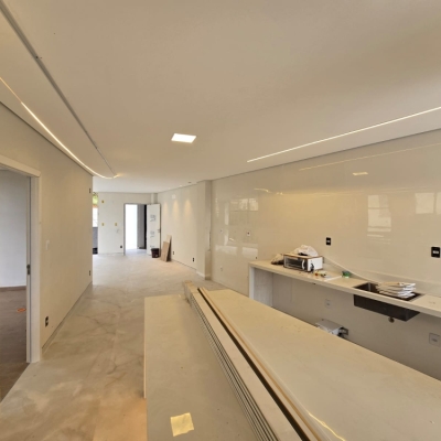 Cozinha em conceito aberto conjugada com copa